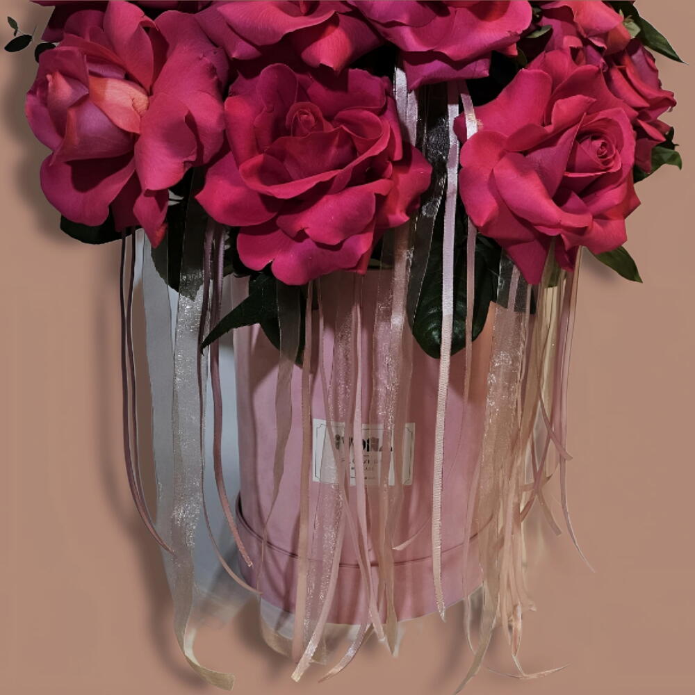 Satin ribbon - 11 шт. Eucalyptus - 3 шт. Pink rose - 21 шт.