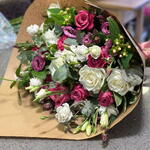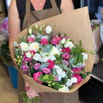 Pink rose - 7 шт. White rose - 5 шт. lisianthus white - 5 шт. lisianthus pink - 5 шт. efkali̇pt - 10 шт.