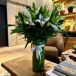 Introducing the Pure Lily Elegance, a stunning bouquet of fresh lilies elegantly presented in a stylish vase. What’s inside: Approx. 15 stems of Elegant White Lilies
