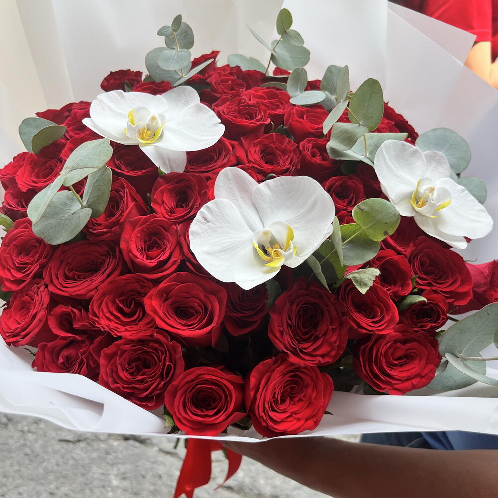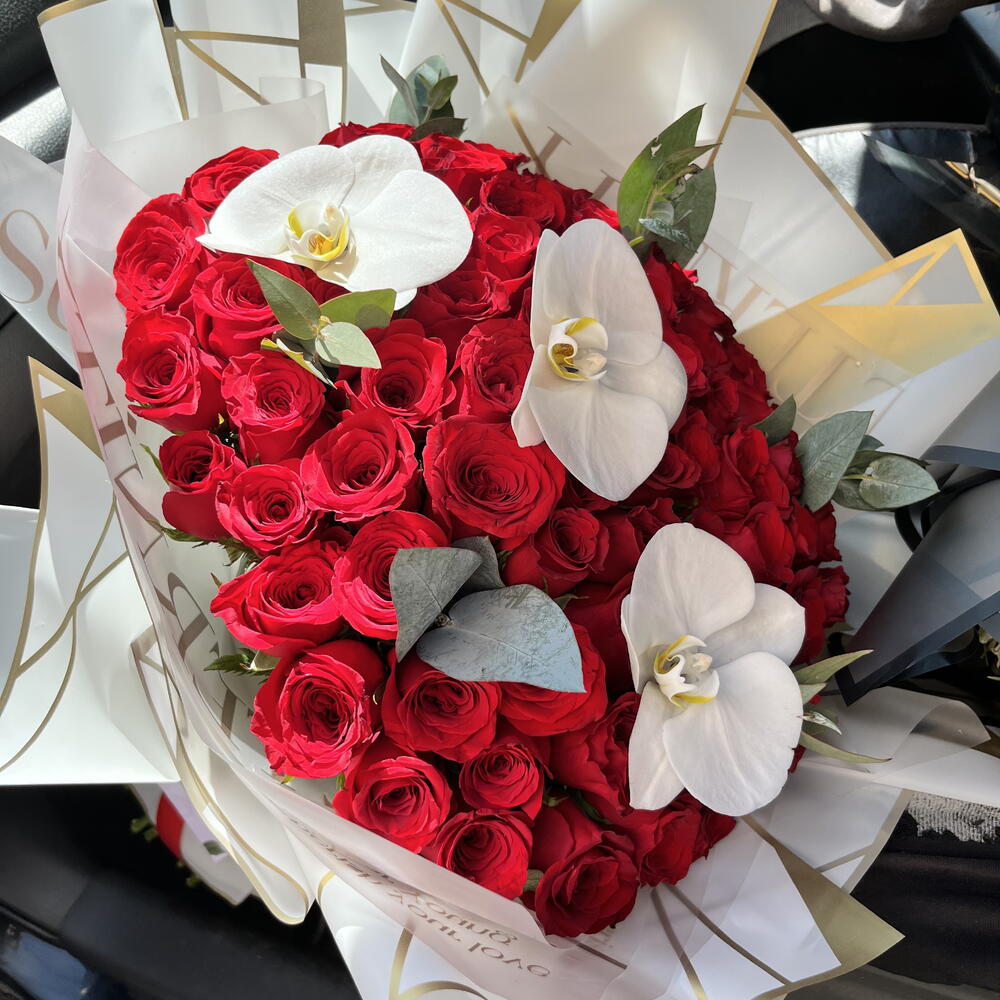 rosas rojas - 70 шт. орхидея фаленопсис - 3 шт.