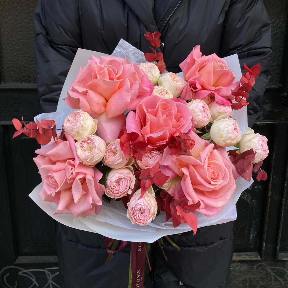 Eucalyptus - 2 шт. rose - 5 шт. spray roses - 4 шт.