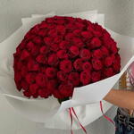 белая упаковка - 1 шт. красные розы "пламя страсти" - 101 шт.