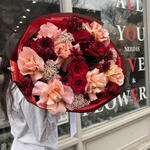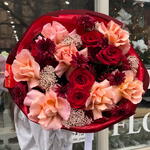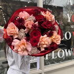 Букет красивый получился. Доставили немного позже назначенного времени, не критично для нас это было. Фото отчет сделали быстро. Доставка считаю дорогая, плюс большие розы не первой свежести были.