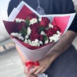Red rose - 7 шт. Statice - 5 шт. ruscus leaves - 5 шт.