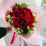 rosas rojas - 25 шт. альстромерия белая - 12 шт.