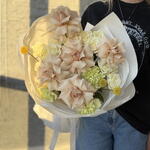 Песочно-фисташковый - французские розы, кустовые розы, гвоздика