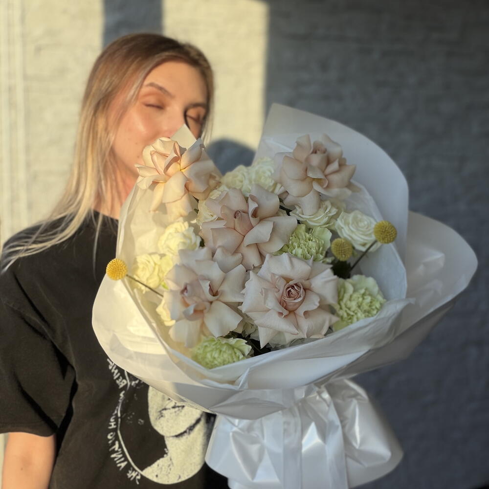 Песочно-фисташковый - французские розы, кустовые розы, гвоздика