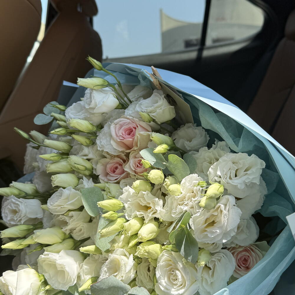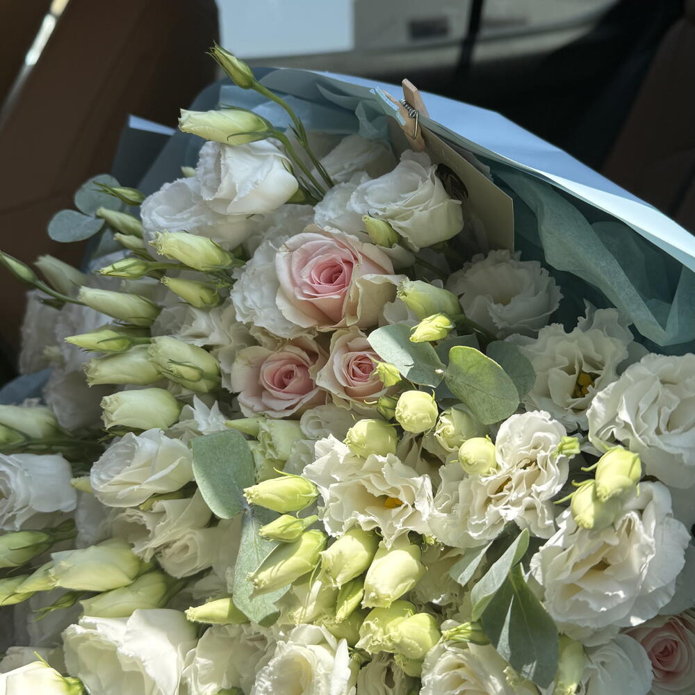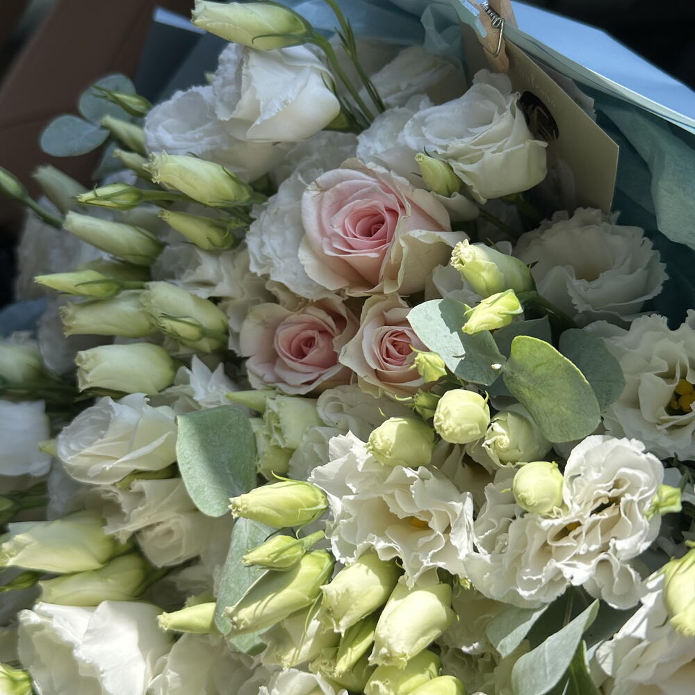 Eustoma white - 50 шт. one-headed rose - 30 шт.