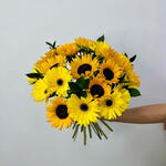 Sunflower - 9 шт. Gerbera - 9 шт. Ruskus - 10 шт. packaging - 1 шт.