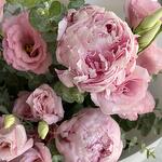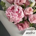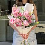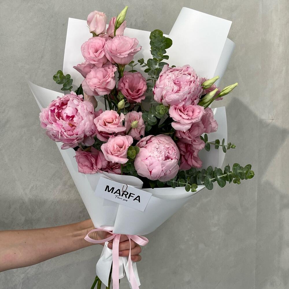 A pink bouquet of seasonal flowers – fragrant peonies and lush lisianthus. A perfect gift for any occasion or just because, with fast delivery in Belgrade.