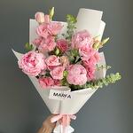 Эустома - 3 шт. Пион Сара Бернар - 3 шт. Эвкалипт Baby Blue - 2 шт.