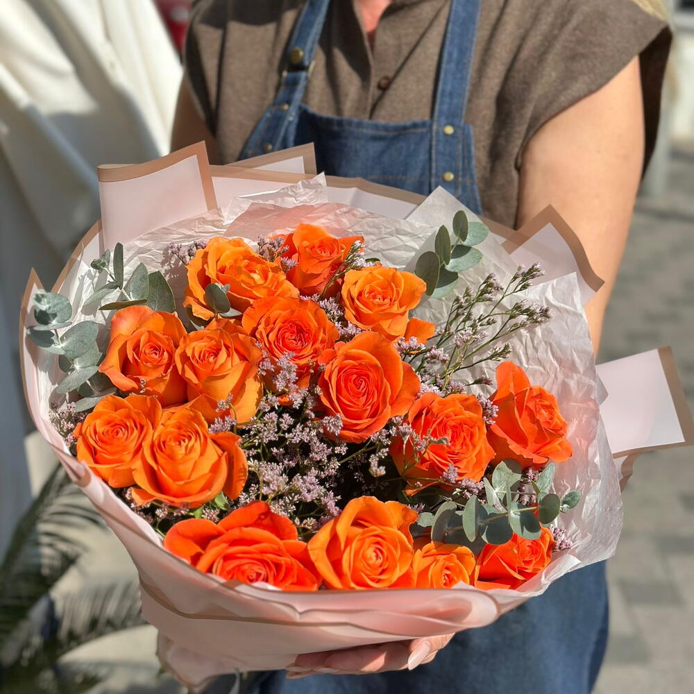 eukalyptus - 7 шт. lemonioum - 10 шт. orange roses - 15 шт.