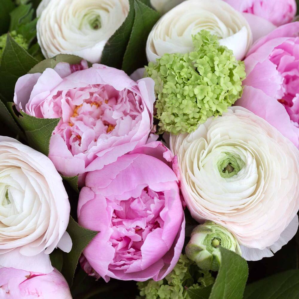Satin ribbon - 1 шт. Viburnum - 3 шт. packaging - 1 шт. ranunculus - 4 шт. decorative greenery - 3 шт.