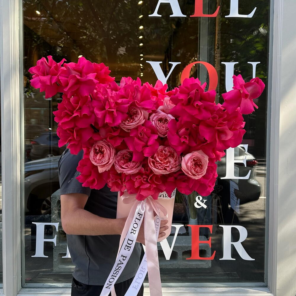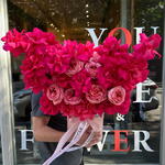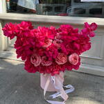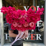 Кураторская коробка с ярко-розовыми французскими розами и розовыми пионовидными розами 💞 Яркая и очень ароматная, с достаточно стойкими цветами в композиции. Такая композиция несомненно поднимет настроение и запомнится своим исполнением. Поскольку все цветы уникальны, как и люди, букет может немного отличаться. Но мы стараемся повторить каждый букет максимально точно, как на фото в карточке товара. Добавьте в избранное, чтобы не потерять! КАК УХАЖИВАТЬ ЗА ЦВЕТАМИ? Не снимайте оберточную бумагу с букета, так цветы продержатся дольше. Ежедневно меняйте холодную воду в вазе. Держите вазу чистой. Обрезайте стебли каждого цветка каждые два дня. Держите букет подальше от прямых солнечных лучей, сквозняков и обогревателей. Добавьте питательные вещества для цветов через 2-3 дня после покупки букета (мы добавляем питательные вещества в каждый букет).