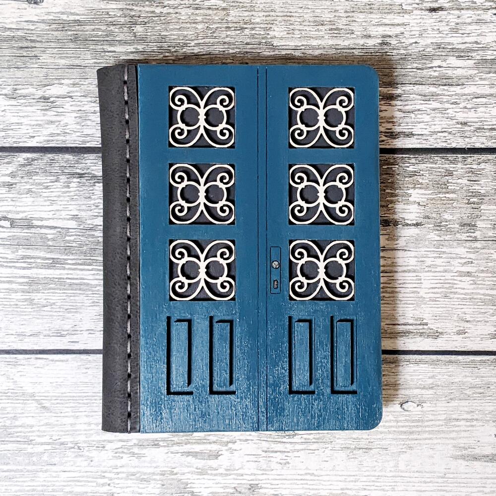 This journal is based on a real Belgrade door, which you can find in the city (you can find the address on the back). A unique handmade notebook with a door-shaped cover is a great gift for an artist, someone who sketches, takes notes, keeps a diary or day planner, or any lover of unusual gifts. THE COVER OF THE JOURNAL We make covers from high-quality plywood, paint them by hand with acryl paints and then cover them with water-base varnish. That is why the texture of every journal cover is unique. The hardcover works as a hard surface to let you draw or make notes anywhere you get inspired. The plywood cover protects paper as well. ECO-LEATHER BINDING For binding we use high-quality eco-leather. It is wear proof and pleasant to touch. PAPER We use fine designer eco paper Flora Anice that is 30% recycled and contains plant inclusions, so each page looks unique and textured. Еhe color of the paper is soft cream. It is suitable for pencils, pens and liner. The pages are padded, so it is easy to unfold the journal flat and write and draw in it. The journal has 64 sheets (128 pages). HARDWARE We use metal hardware to make our journals look prettier and smarter. If you have questions left or you want to customize your purchase, feel free to contact me and I will try to make your dream journal :)