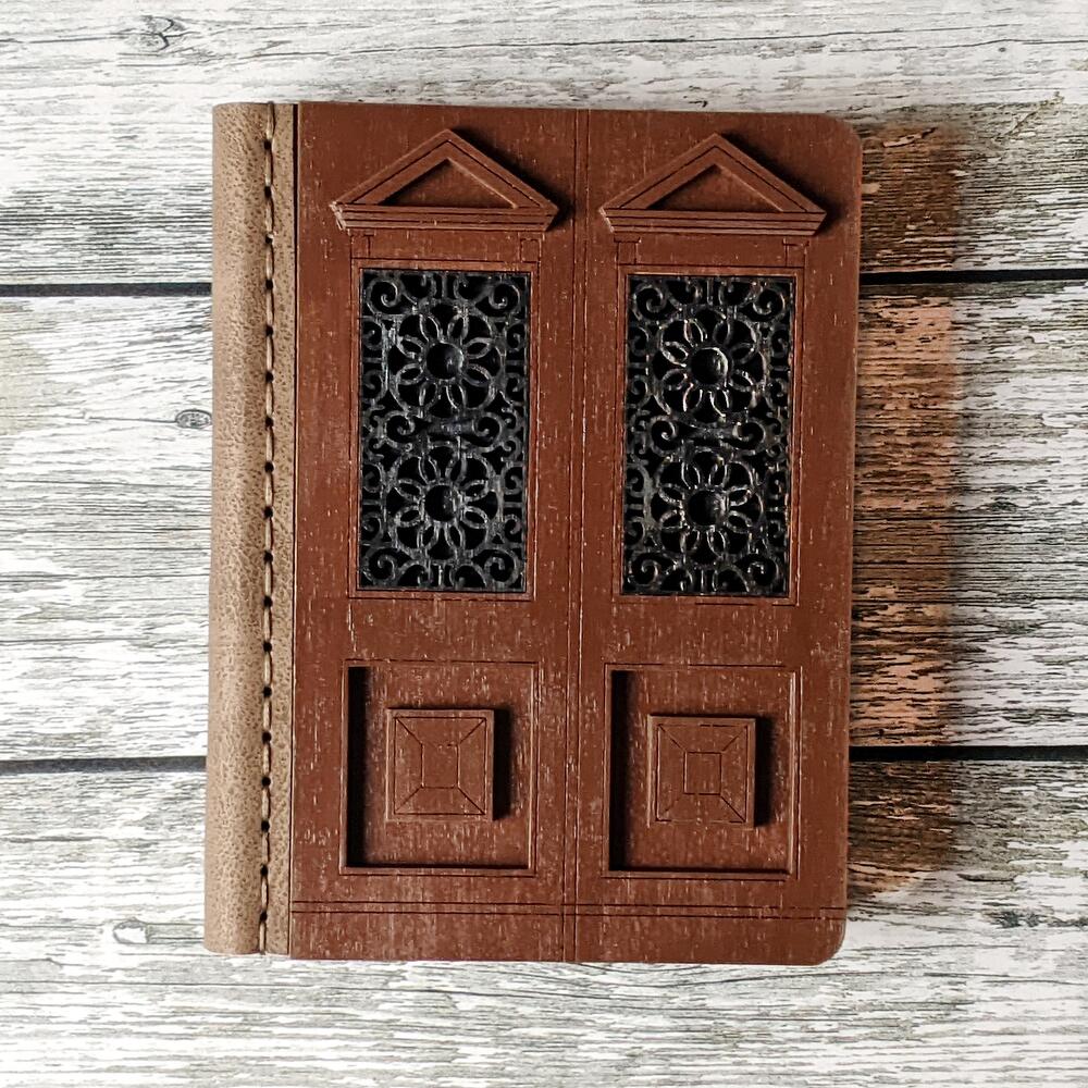 This journal is based on a real Belgrade door, which you can find in the city (you can find the address on the back). A unique handmade notebook with a door-shaped cover is a great gift for an artist, someone who sketches, takes notes, keeps a diary or day planner, or any lover of unusual gifts. THE COVER OF THE JOURNAL We make covers from high-quality plywood, paint them by hand with acryl paints and then cover them with water-base varnish. That is why the texture of every journal cover is unique. The hardcover works as a hard surface to let you draw or make notes anywhere you get inspired. The plywood cover protects paper as well. ECO-LEATHER BINDING For binding we use high-quality eco-leather. It is wear proof and pleasant to touch. PAPER We use fine designer eco paper Flora Anice that is 30% recycled and contains plant inclusions, so each page looks unique and textured. Еhe color of the paper is soft cream. It is suitable for pencils, pens and liner. The pages are padded, so it is easy to unfold the journal flat and write and draw in it. The journal has 64 sheets (128 pages). HARDWARE We use metal hardware to make our journals look prettier and smarter. If you have questions left or you want to customize your purchase, feel free to contact me and I will try to make your dream journal :)