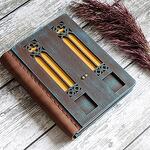 A unique handmade notebook with a door-shaped cover is a great gift for an artist, someone who sketches, takes notes, keeps a diary or day planner, or any lover of unusual gifts. THE COVER OF THE JOURNAL We make covers from high-quality plywood, paint them by hand with acryl paints and then cover them with water-base varnish. That is why the texture of every journal cover is unique. The hardcover works as a hard surface to let you draw or make notes anywhere you get inspired. The plywood cover protects paper as well. ECO-LEATHER BINDING For binding we use high-quality eco-leather. It is wear proof and pleasant to touch. PAPER We use fine designer eco paper Flora Anice that is 30% recycled and contains plant inclusions, so each page looks unique and textured. Еhe color of the paper is soft cream. It is suitable for pencils, pens and liner. The pages are padded, so it is easy to unfold the journal flat and write and draw in it. The journal has 64 sheets (128 pages). HARDWARE We use metal hardware to make our journals look prettier and smarter. If you have questions left or you want to customize your purchase, feel free to contact me and I will try to make your dream journal :)