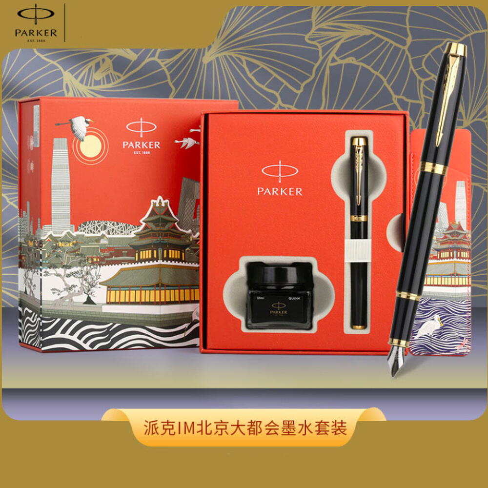 Pen: PARKER Pen Metropolis Gift Box IM Frosted Pure Black Liya Gold Clip Ink Pen Set Remarks: Parker pens can use the same brand of Parker ink core (i.e. ink cartridge) Pencil case: Jinyue Treasures - Sijunzi Meilan Bamboo Chrysanthemum Rotating Pencil Box Gift Box Package volume: about: 17×17×19CM Gross weight: about 1KG Item number: LHB-003 Sijunzi