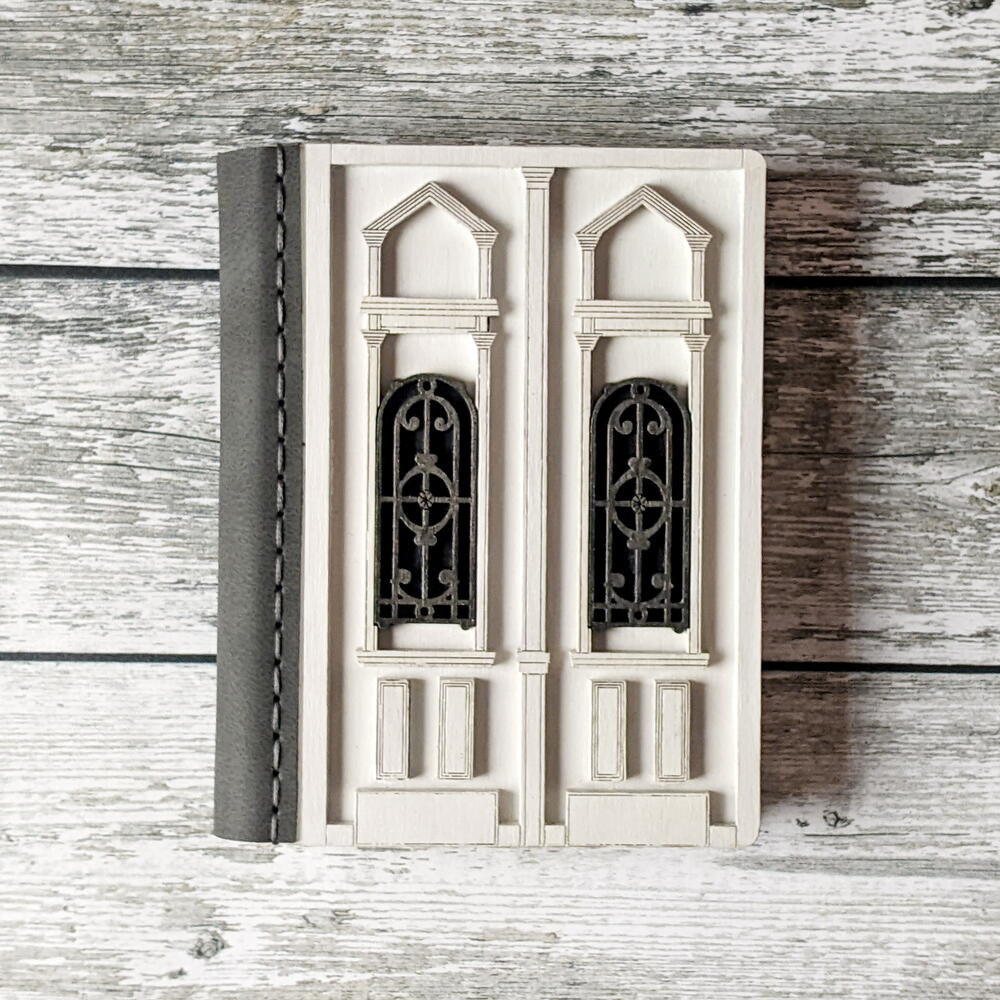 This journal is based on a real Belgrade door, which you can find in the city (you can find the address on the back). A unique handmade notebook with a door-shaped cover is a great gift for an artist, someone who sketches, takes notes, keeps a diary or day planner, or any lover of unusual gifts. THE COVER OF THE JOURNAL We make covers from high-quality plywood, paint them by hand with acryl paints and then cover them with water-base varnish. That is why the texture of every journal cover is unique. The hardcover works as a hard surface to let you draw or make notes anywhere you get inspired. The plywood cover protects paper as well. ECO-LEATHER BINDING For binding we use high-quality eco-leather. It is wear proof and pleasant to touch. PAPER We use fine designer eco paper Flora Anice that is 30% recycled and contains plant inclusions, so each page looks unique and textured. Еhe color of the paper is soft cream. It is suitable for pencils, pens and liner. The pages are padded, so it is easy to unfold the journal flat and write and draw in it. The journal has 64 sheets (128 pages). HARDWARE We use metal hardware to make our journals look prettier and smarter. If you have questions left or you want to customize your purchase, feel free to contact me and I will try to make your dream journal :)