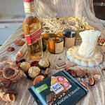 Box - 1 pcs Ferrero rocher - 3 pcs Ritter sport - 1 pcs red label - 200 ml matches - 1 pcs stand - 1 pcs pretzels - 50 g body candle - 1 pcs candle in a jar - 2 pcs