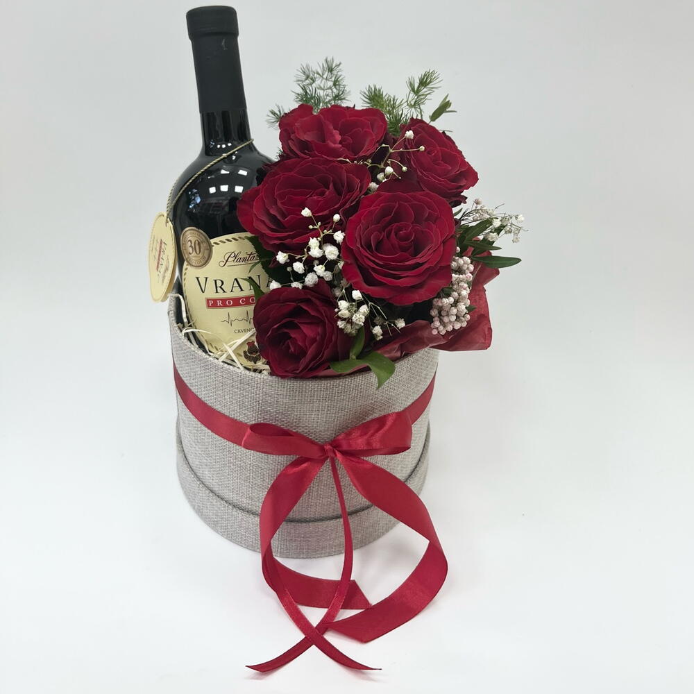 vino - 1 pcs kutija - 1 pcs ruza - 5 pcs