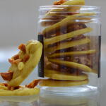 White chocolate, turmeric, curry, cinnamon, cardamom, dried mango.