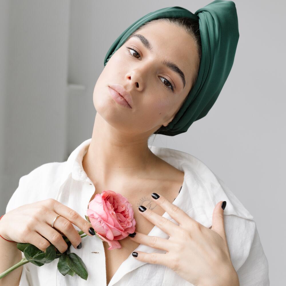 Nadia Davinska türbanı, size kişisel bakım ritüellerinizde birçok mutlu an yaşatacak, lüks ve çekici bir hediye. Nadia Davinska türbanı, şık bir saç aksesuarı olmasının yanı sıra, her şeyden önce saç kurutmak için rahat ve SAĞLIKLI bir çözümdür. İki temel işlevi vardır: 1) Saçınızı özenle ve rahatlıkla kurutmak. 2) Saç kalitenizi iyileştirmek. Misyonumuz, genellikle ıslak saçlarınızla mücadele ederek geçirdiğiniz o değerli dakikaları geri kazanmaktır. Saçınız hızlı, güvenli bir şekilde kururken ve doğal ipekle iyileşirken en önemli olana odaklanın.