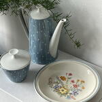 Soft spring set in light blue tones: a vintage coffee pot, sugar bowl, and plate, as if discovered at a quiet morning flea market. Light, airy, and gently nostalgic — perfect for cozy breakfasts and beautiful moments