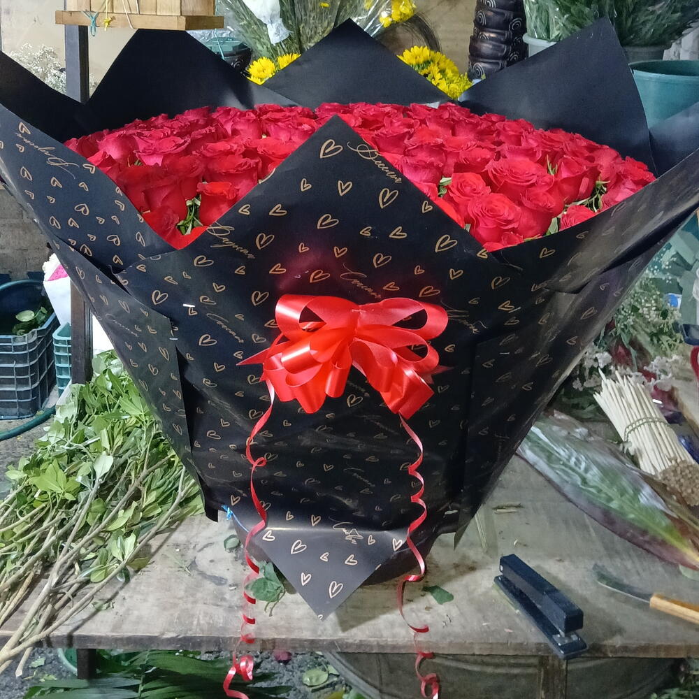 kırmızı gül - 150 adet papel negro y dorado - 6 adet