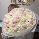 Experience the exquisite charm of this floral arrangement from our Florists Specials. Composed of a delightful mix of 11 hydrangeas and 21 peony roses, this bouquet is sure to enchant with its lavish appearance. Crafted with care and love, it adds a touch of elegance and fresh vibes to any space. Ideal for special occasions, or simply to brighten up a day.