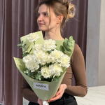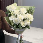 A classic mono bouquet of long-lasting white dianthus with eucalyptus. Elegant, simple, and understated. A perfect gift for any occasion or no occasion at all, with fast delivery in Belgrade.