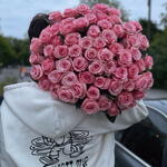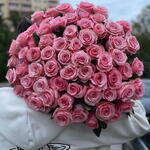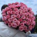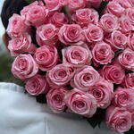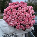 Yoğun, doygun pembe tonunda 65 gülden oluşan bir buket; belirginliği ve tazeliğiyle dikkat çeker. Ambalajın olmaması çiçeklerin doğal formunu vurgular, şık bir kurdele ise bütünlüğe zarif, asil bir karakter kazandırır. Bu, basit ama son derece etkileyici bir kompozisyon — enerji, renk ve duyguyla dolu. Mevsime bağlı olarak güllerin çeşidi ve tonu hafifçe değişiklik gösterebilir. Belirli bir tür bulunmaması durumunda, buketin yoğun karakterini koruyarak benzer pembe tonlarda yüksek kaliteli güller seçilir.