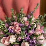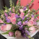 ranunkül Hanoi - 7 adet roses pink - 10 adet matiola lavander - 8 adet tulips lavander - 15 adet
