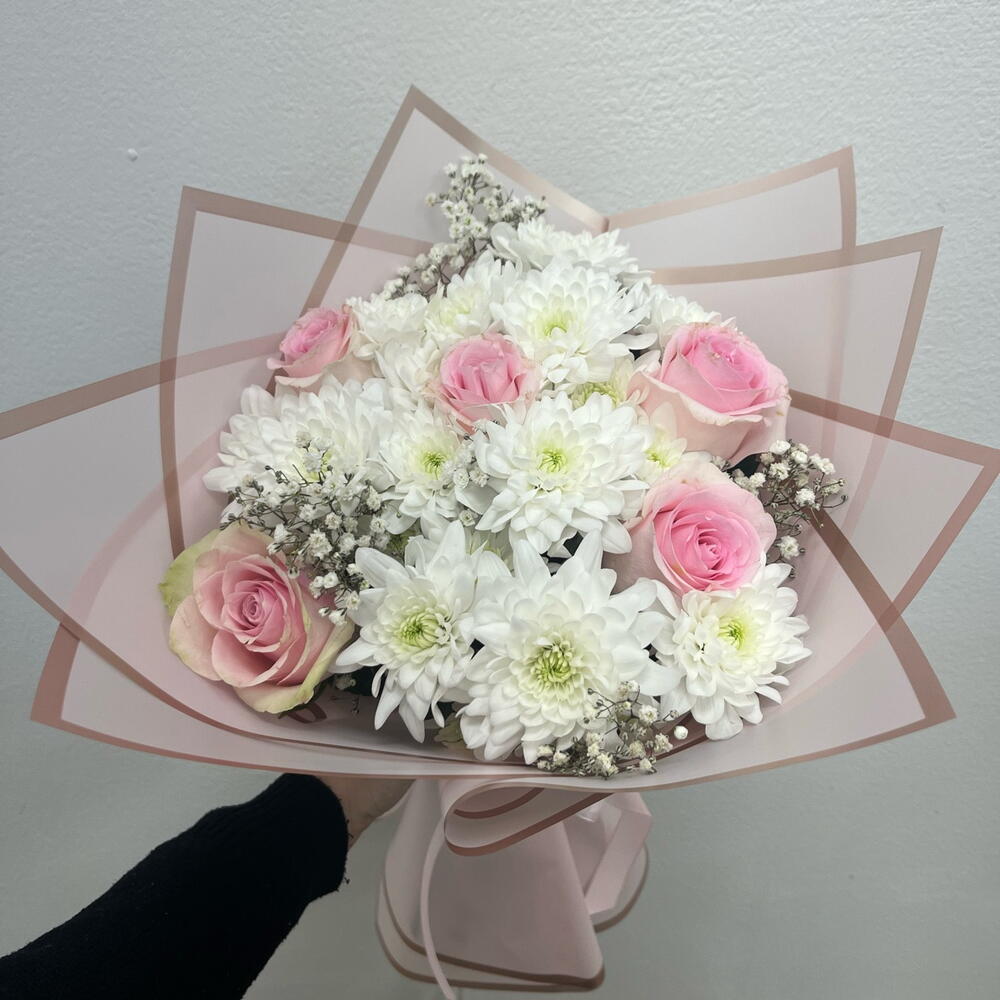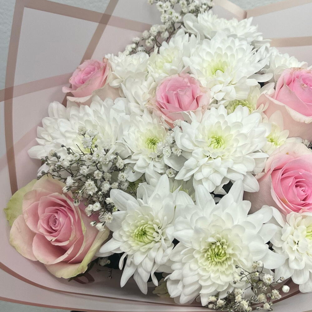 gipsofila - 3 adet krizantem - 3 adet roses pink - 5 adet
