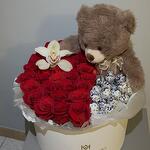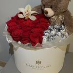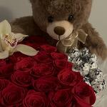 kırmızı gül - 35 adet scatola - 1 adet peluche orsetto - 1 adet baci cioccolatini - 30 adet