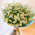 Puokštę sudaro ramūnėlės. Puokštė nuotraukoje yra M dydžio. Įpakavimas įskaičiuotas į puokštės kainą. Galimi puokštės dydžiai: M- 13 vnt. L- 25 vnt .