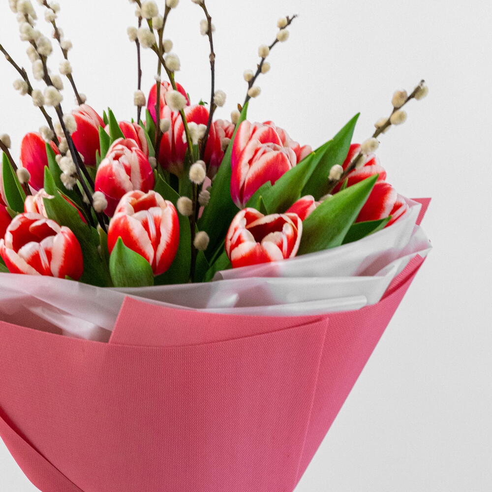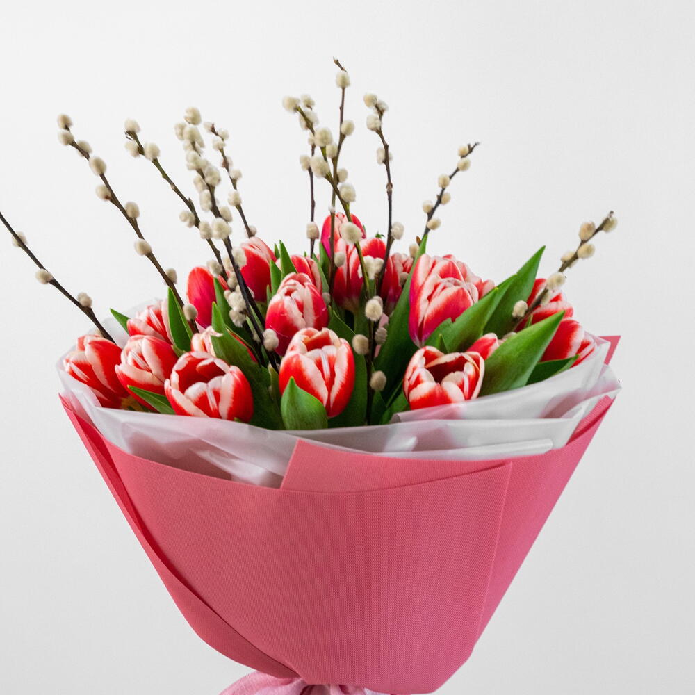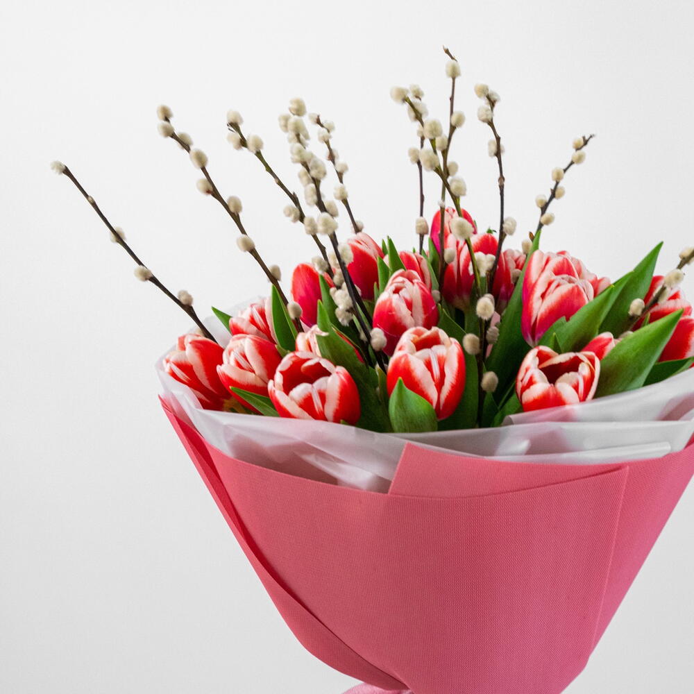 Tulips - 25 adet paper - 6 adet ribbon satin - 1 adet salix - 10 adet