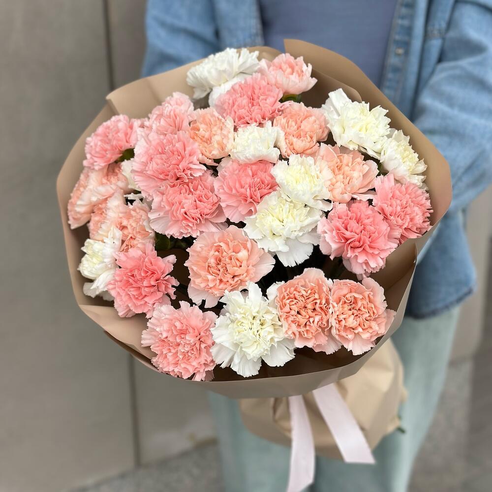 «Carnation Charm – kelimelerden daha fazlasını söyleyen buket Zarafet ve tazelik dolu, Amerikan tarzı karanfil buketi. Doğum günü, teşekkür, yıldönümü veya sadece… vesile olmadan ideal. Dayanıklı çiçekler, göz alıcı renkler ve eşsiz hafiflik – akılda kalan çiçekler.