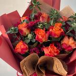 turuncu güller - 9 adet otlar dekorasyonlar - 10 adet safran - 2 adet