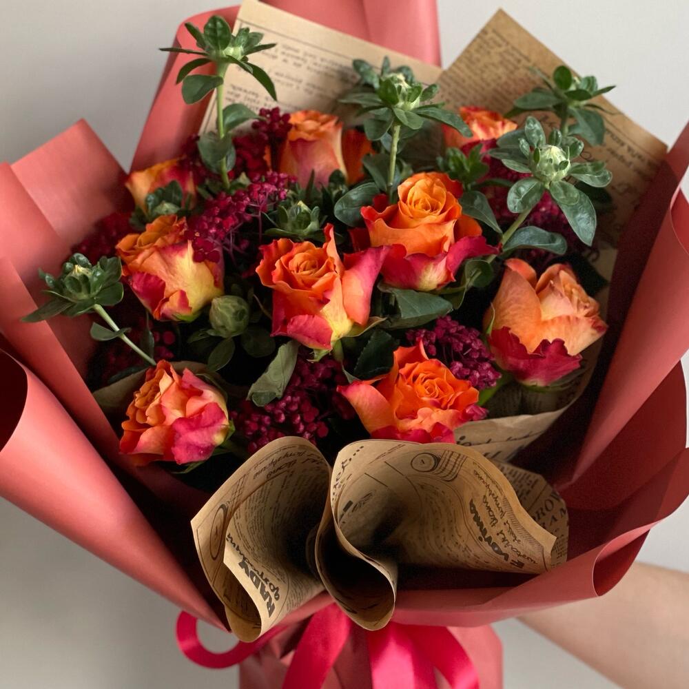 turuncu güller - 9 adet otlar dekorasyonlar - 10 adet safran - 2 adet