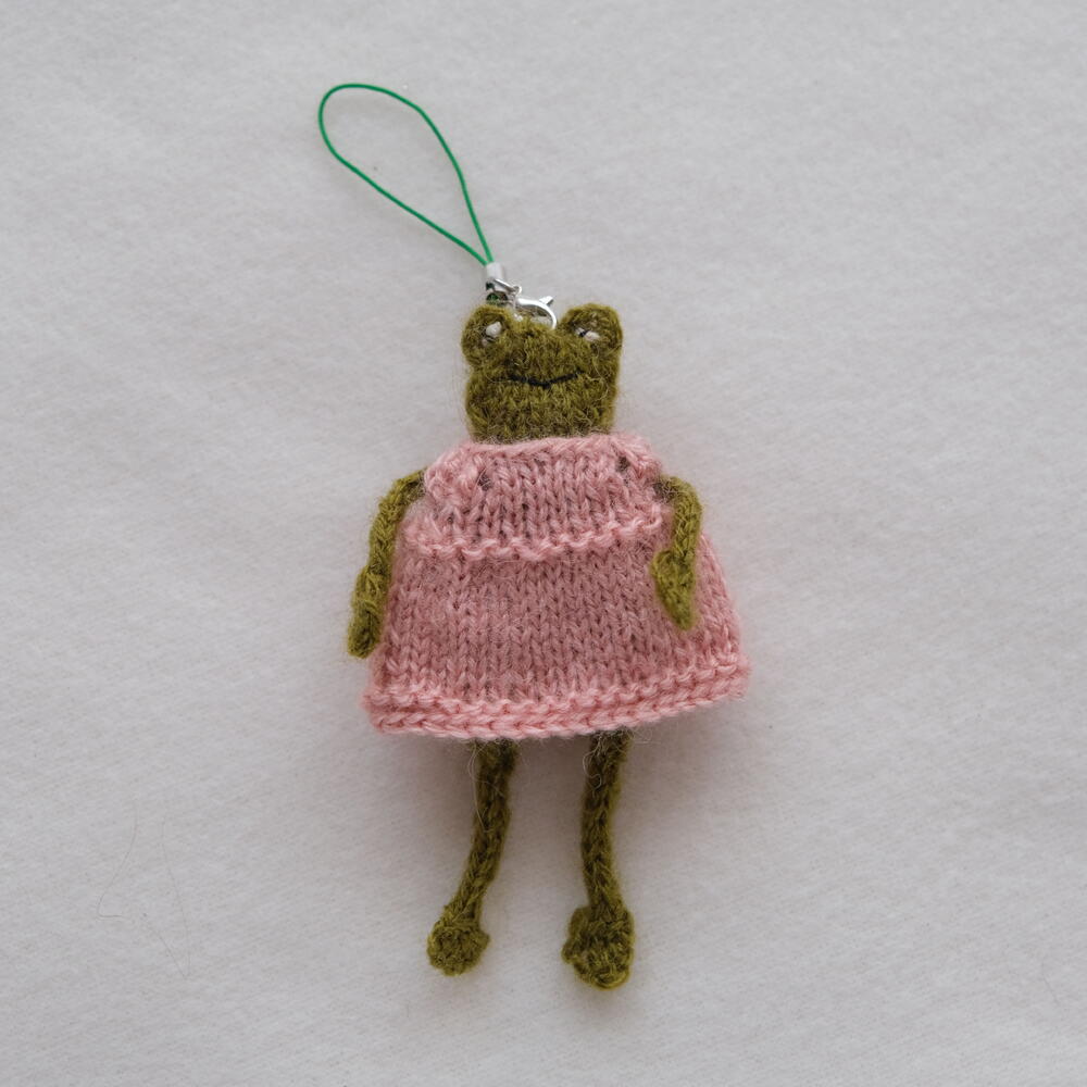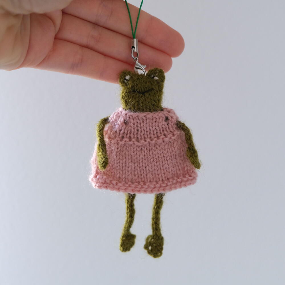 This adorable knitted frog in a dress is made to bring smiles and warm emotions! It will become a lovely companion for you or your loved ones, delighting with its cute look and cozy outfit. The frog can be used as a keychain, a decoration for your workspace, or a little pocket friend to lift your spirits. Each frog is handmade with love and attention to detail. High-quality wool blend yarn is used, making the toy soft, pleasant to the touch, and a long-lasting source of joy. 📏 Size: 10 cm 🎨 Color: Green, dress – pink 🧼 Care: Hand wash in warm soapy water is recommended ⚠ Note: The color may slightly vary due to screen settings. If you have any questions, feel free to message me on Flowwow. Wishing you a pleasant shopping experience and a wonderful day! Best regards, Oksana