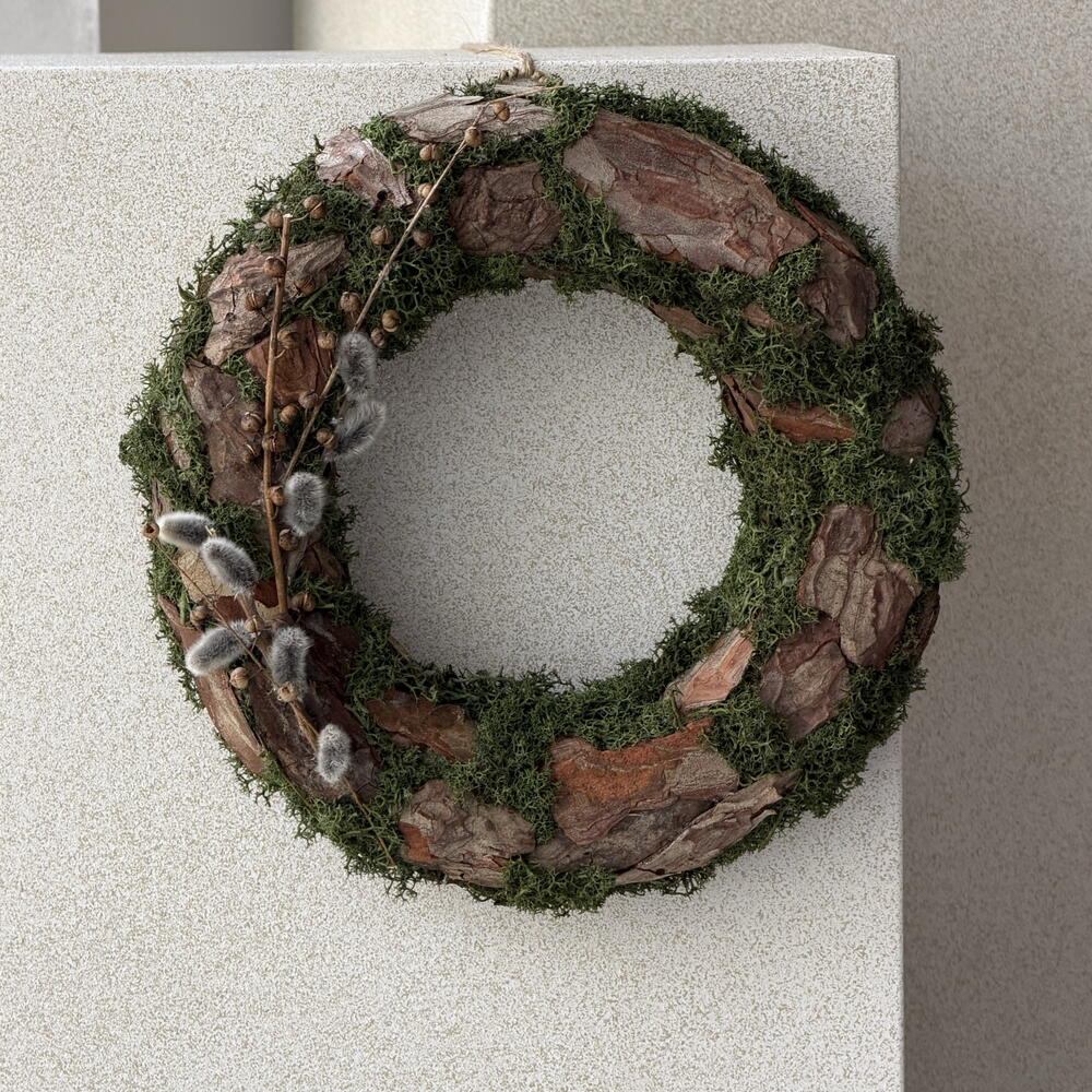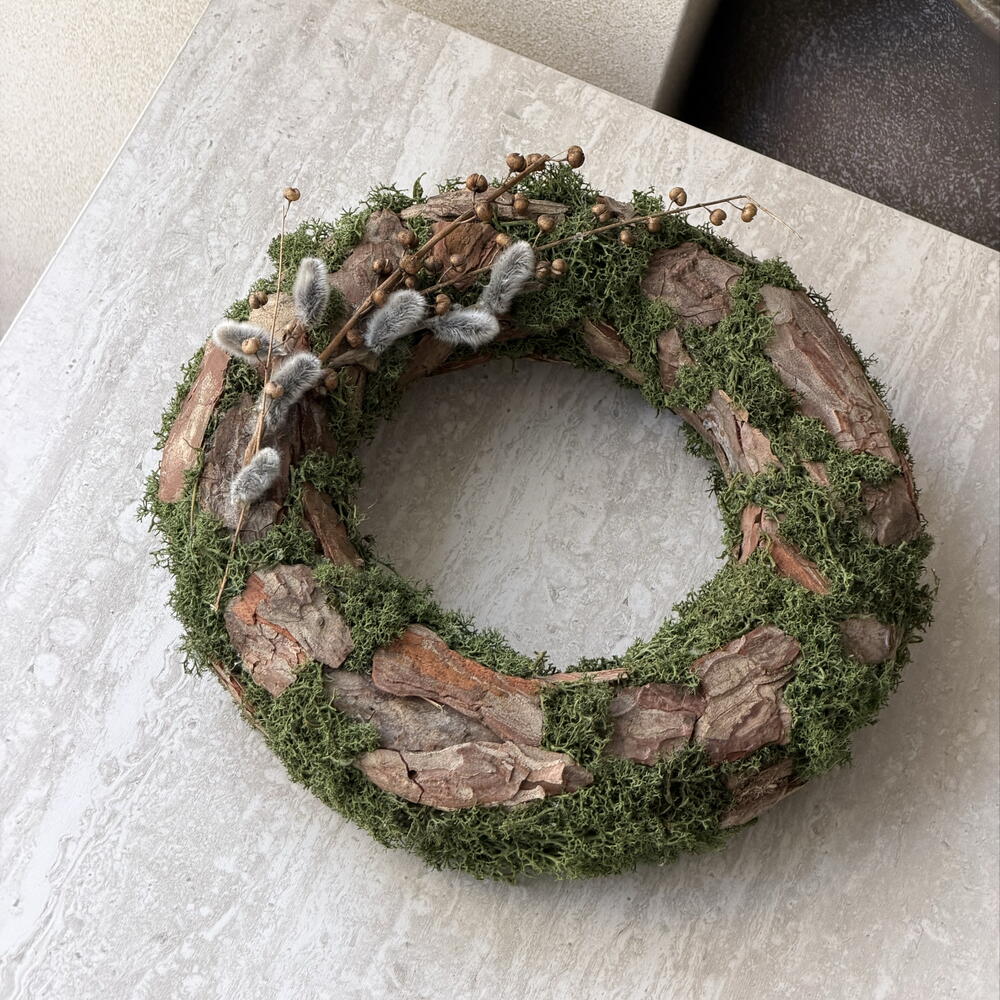 An Easter eco wreath made entirely from natural, fresh materials with willow branches. A perfect Easter gift — delivered in a gift box with a hook included.