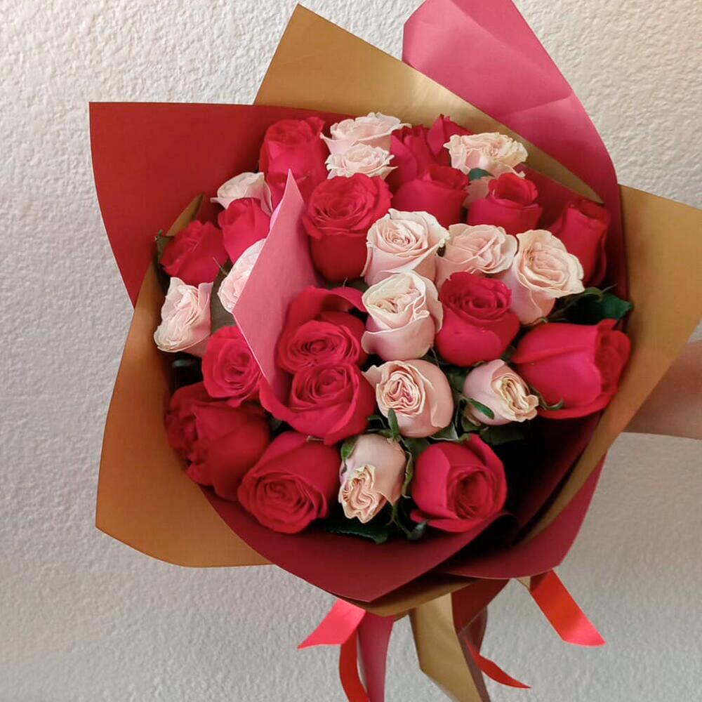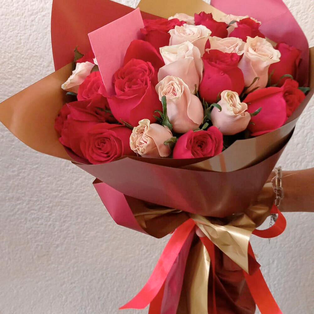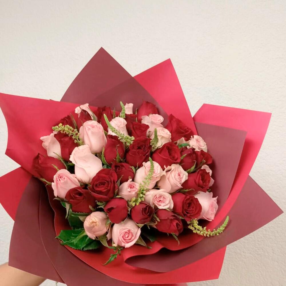 Este elegante ramo combina la pasión del rojo intenso con la suavidad del rosa, creando una armonía perfecta de amor y ternura. Compuesto por una selección exquisita de rosas rojas y rosas pastel, este bouquet es ideal para expresar sentimientos profundos, ya sea en aniversarios, celebraciones románticas o momentos especiales. Su envoltura en tonos rojos profundos resalta la belleza de cada flor, dándole un toque sofisticado y lleno de encanto. Es un regalo inolvidable que transmite emociones sinceras y duraderas. Para mantener la frescura del ramo, se recomienda cambiar el agua cada dos días, cortar los tallos en diagonal antes de colocarlo en un florero limpio y evitar la exposición directa al sol o corrientes de aire.