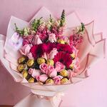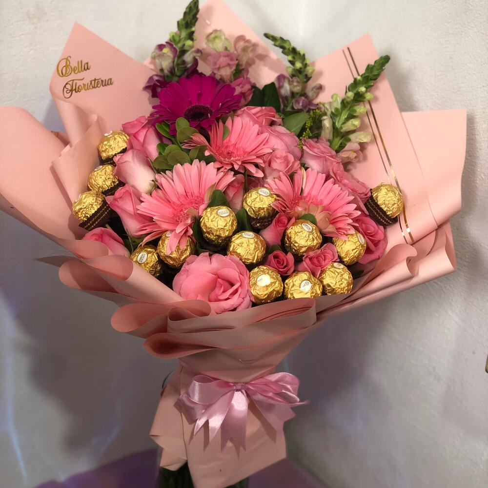 шоколадні цукерки ferrero rocher - 15 шт. троянди кольору на вибір - 18 шт. Gerbera color a elegir - 4 шт. perritos color a elegir - 4 шт.