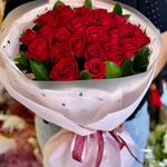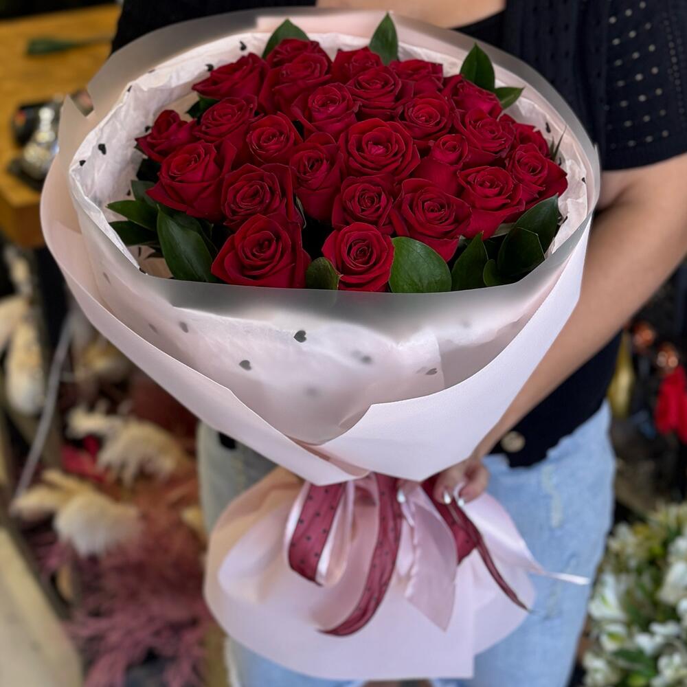 Ribbon - 2 шт. Ruscus - 10 шт. rose - 25 шт. paper - 6 шт.