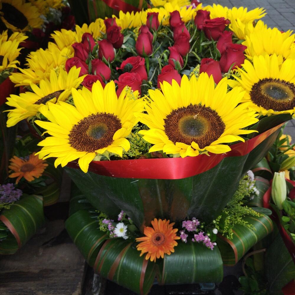 Solidago - 24 шт. rosa roja - 24 шт. соняшники - 12 шт. clavo - 30 шт.