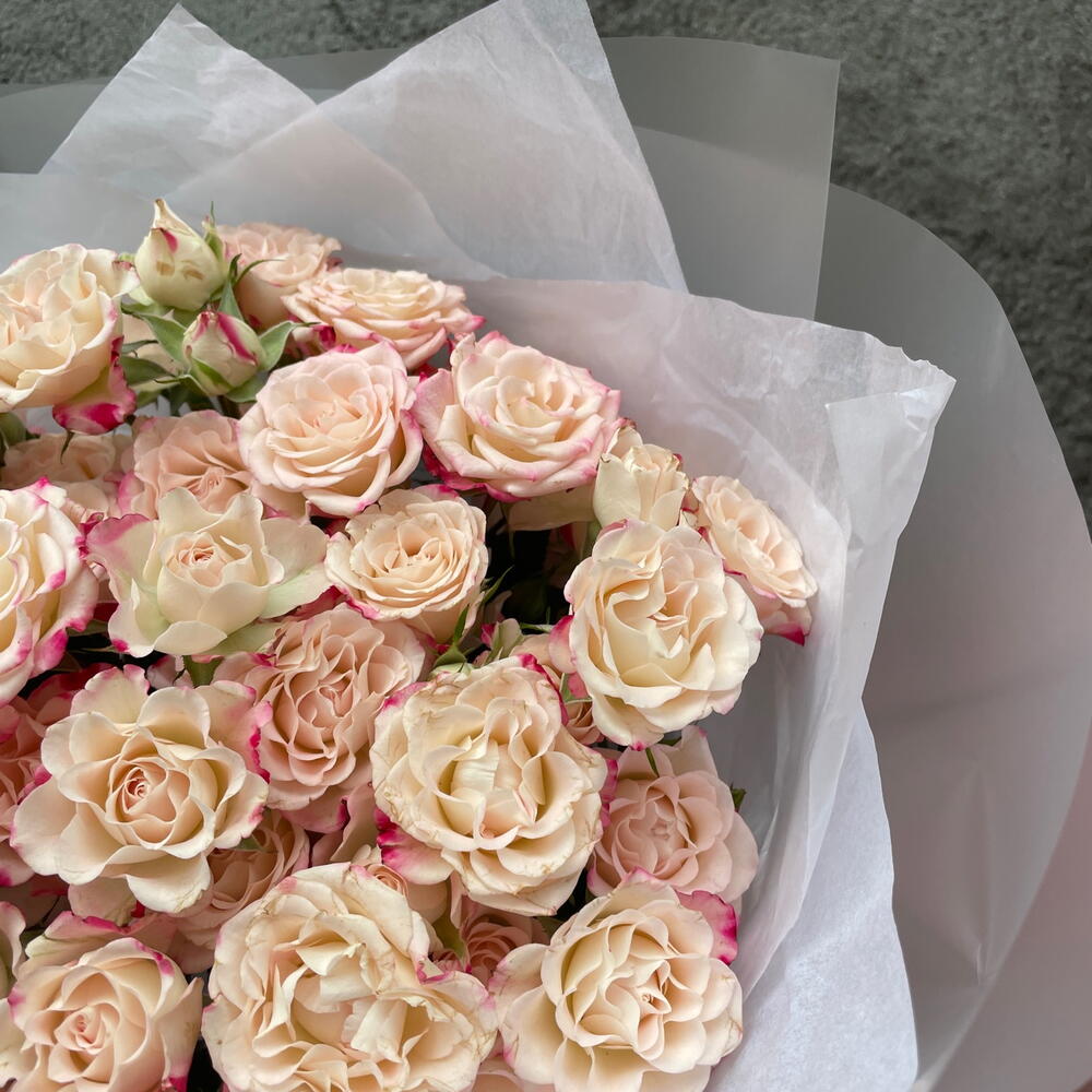 Each bouquet is handcrafted by our florists, making every arrangement unique. Due to seasonal availability, slight variations from the catalog photo are possible. If necessary, flowers may be substituted with similar ones of equal or higher value while maintaining the bouquet’s style and color palette. We will inform you in advance of any changes.