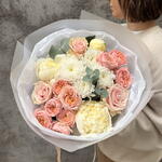 Each bouquet is handcrafted by our florists, making every arrangement unique. Due to seasonal availability, slight variations from the catalog photo are possible. If necessary, flowers may be substituted with similar ones of equal or higher value while maintaining the bouquet’s style and color palette. We will inform you in advance of any changes.
