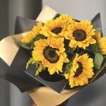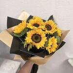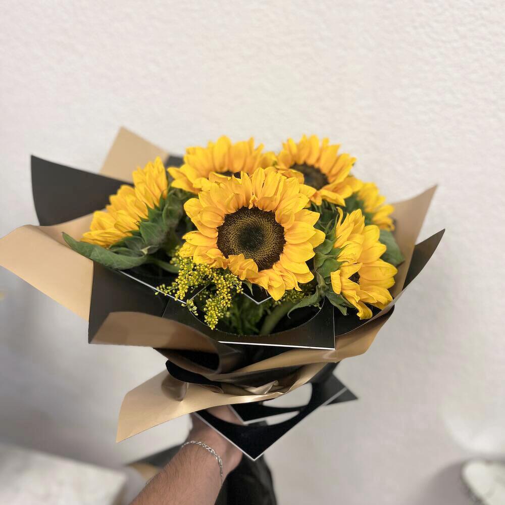 Este elegante ramo de girasoles es una expresión radiante de alegría y energía positiva. Con su vibrante color amarillo y sus pétalos amplios, simboliza la felicidad, la vitalidad y la admiración. Ideal para sorprender a un ser querido, celebrar un logro o simplemente llenar de luz cualquier espacio. Para mantener la frescura del ramo, coloca los girasoles en un florero con agua limpia y fresca, cambiándola cada dos días. Recorta los tallos en un ángulo de 45° para una mejor absorción del agua y evita la exposición directa a la luz solar y al calor extremo.